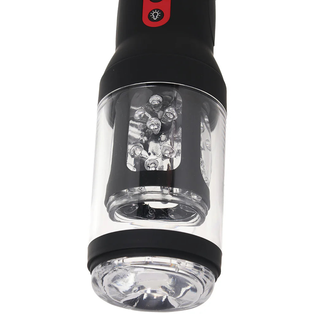 Inside, a soft, grippy TPE sleeve lined with nubby textures delivers intense stimulation, while the clear viewing window lets you watch every thrust, twist, and pulse in action. It’s a customizable, high-tech ride you’ll be thinking about long after you’ve caught your breath.
