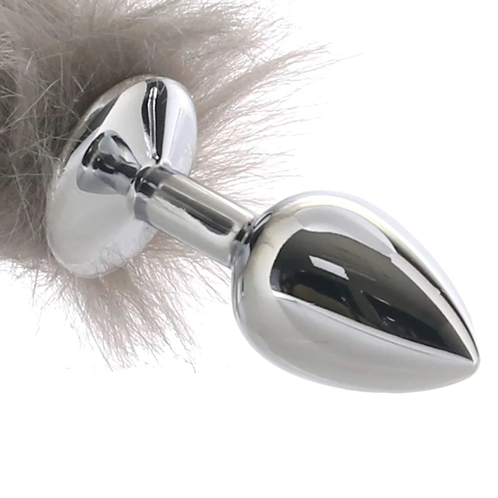 Long, fluffy grey faux fur tail adds flair, fun, and visual excitement